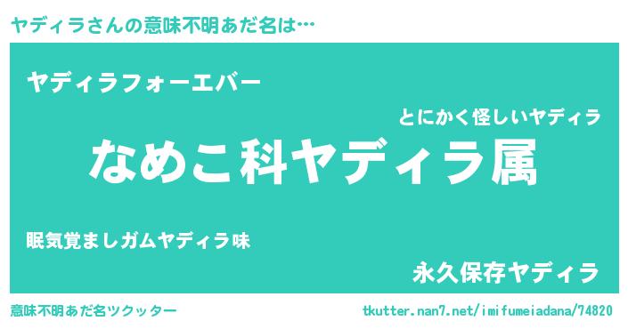 | 男性向けラノベタイトル風あだ名 | 『転生したらヤディラだった件』 |