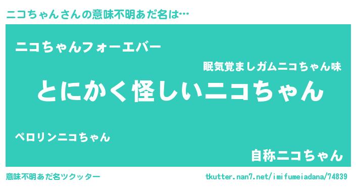 | ヒーロー風カッコイイあだ名 | 『暗黒騎士ニコ』『最強戦士ニコチャン』 |