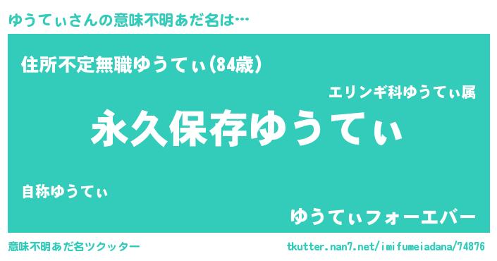 | 胡散臭い通販商品みたいなあだ名 | 『来世でも幸せになれる水素水…その名も「ゆうてぃ」』 |