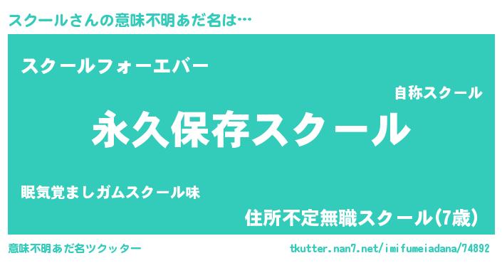 | 男性向けラノベタイトル風あだ名 | 『スクールに滅ぼされるだけの簡単なお仕事です』 |
