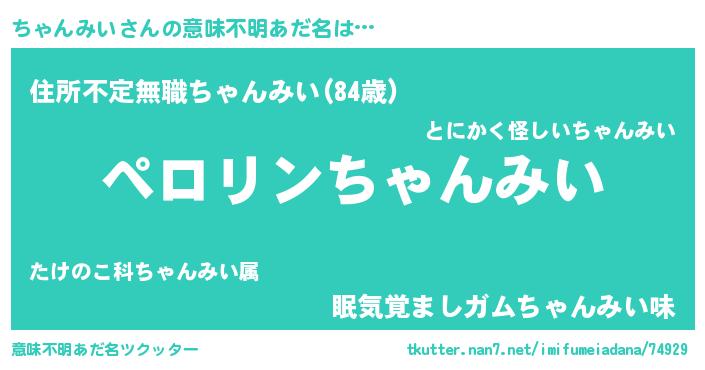 | ヒーロー風カッコイイあだ名 | 『スーパーチャンミイ』『仮面チャダー』 |