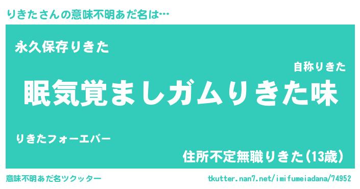 | ヘコむあだ名 | 『りきた(笑)』『酢こんぶ』 |