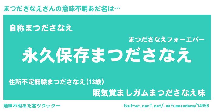 | 男性向けラノベタイトル風あだ名 | 『まつださなえに滅ぼされるだけの簡単なお仕事です』 |
