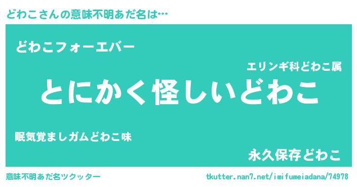 | ヘコむあだ名 | 『どわっ子』『なまこ酢』『どわにー』 |