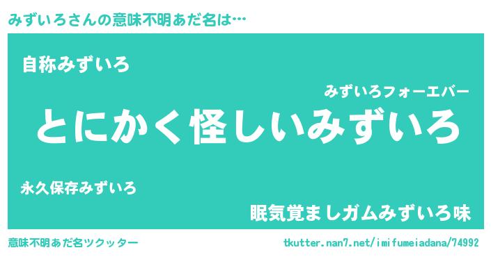 | ヒーロー風カッコイイあだ名 | 『黄金騎士ミズ』『超時空戦士ミズイロ』 |