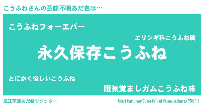 | 胡散臭い通販商品みたいなあだ名 | 『来世でも幸せになれる水素水…その名も「こうふね」』 |