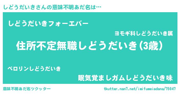 | 胡散臭い通販商品みたいなあだ名 | 『あなたにだけ特別に提供する100年もののヴィンテージワイン…その名も「しどうだいき」』 |