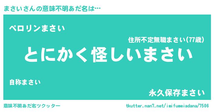| 女子向けラノベタイトル風あだ名 | 『まさい様がみてる』 |