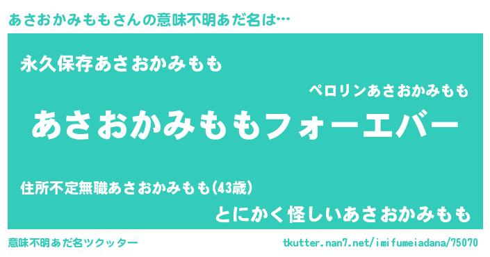 | ファンタジー風あだ名 | 『エターナルアサオカミモモー』 |