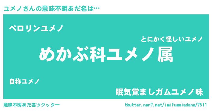 | 男性向けラノベタイトル風あだ名 | 『ユメノスレイヤー』『ユメノの憂鬱』 |