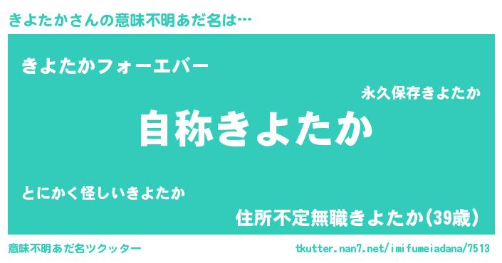 | 男性向けラノベタイトル風あだ名 | 『きよたかに滅ぼされるだけの簡単なお仕事です』 |