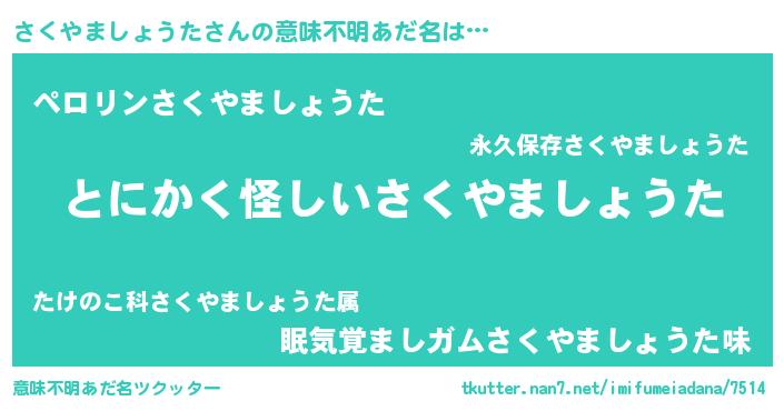 | 男性向けラノベタイトル風あだ名 | 『さくやましょうたの嫁は女の子じゃないと思った?』 |