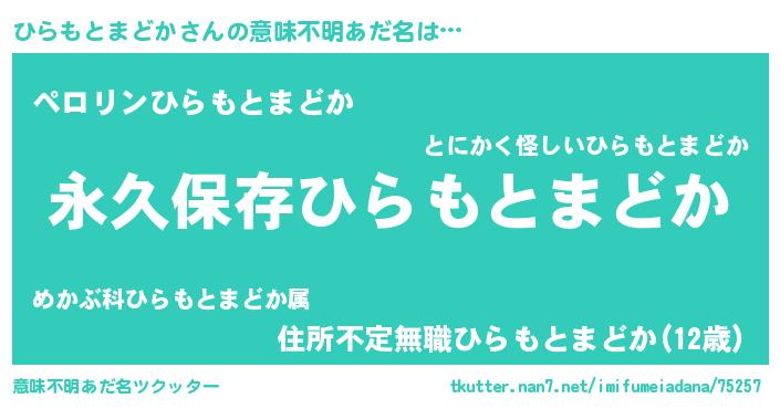 | ヘコむあだ名 | 『ひらもとまどか(震え声)』『ひらっふぃ~』 |