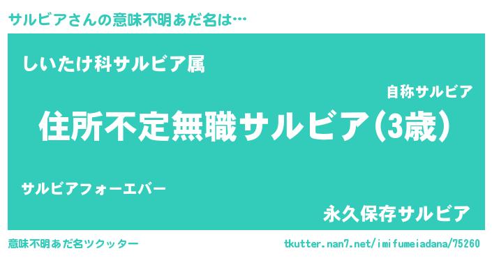 | 女子向けラノベタイトル風あだ名 | 『サルビアが死なない童話 林檎のサルビアの診療簿』 |