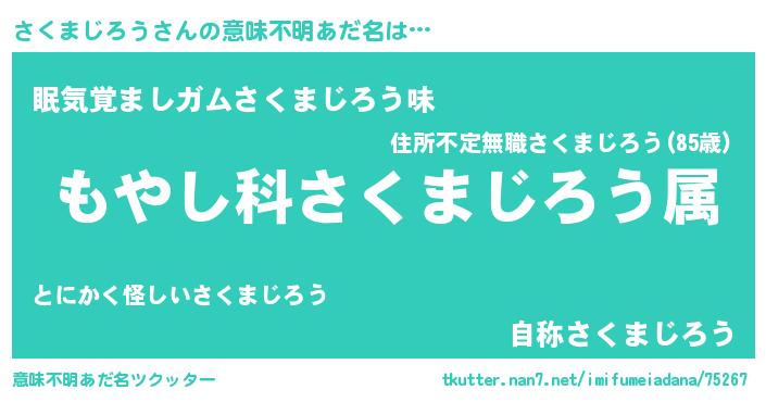 | 男性向けラノベタイトル風あだ名 | 『転生したらさくまじろうだった件』 |