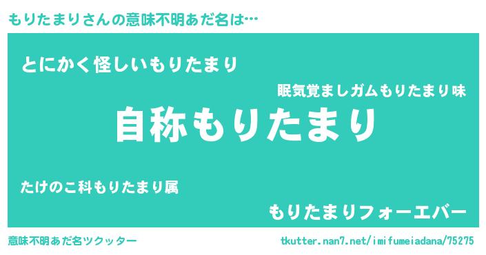 | 男性向けラノベタイトル風あだ名 | 『もりたまりに滅ぼされるだけの簡単なお仕事です』 |