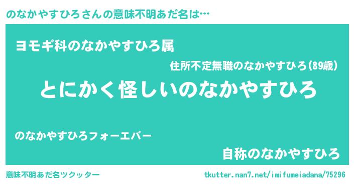 | 男性向けラノベタイトル風あだ名 | 『のなかやすひろの嫁は女の子じゃないと思った?』 |