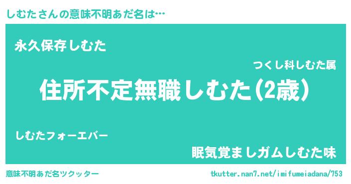 | ヘコむあだ名 | 『しむた(小並感)』『酢こんぶ』 |