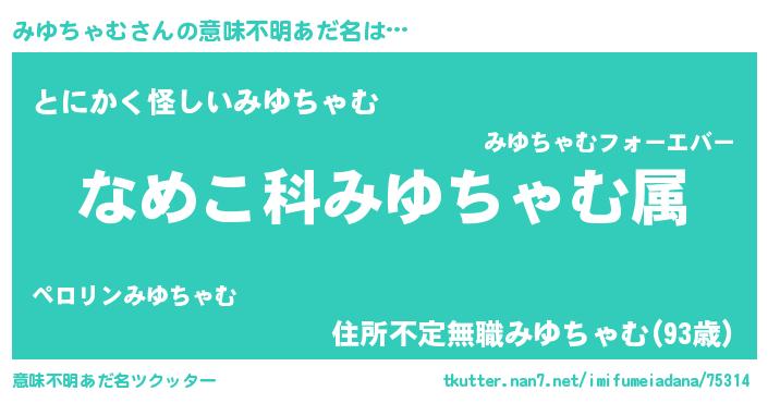 | 男性向けラノベタイトル風あだ名 | 『転生したらみゆちゃむだった件』 |