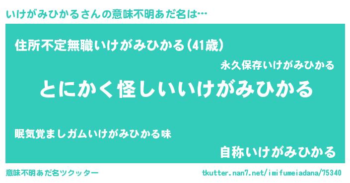 | 胡散臭い通販商品みたいなあだ名 | 『全米が絶賛したサプリメント…その名も「いけがみひかる」』 |