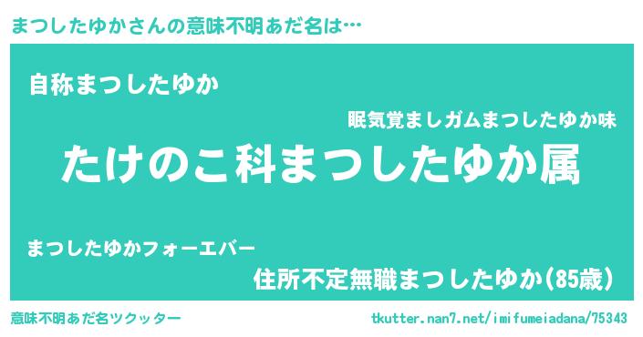 | 男性向けラノベタイトル風あだ名 | 『転生したらまつしたゆかだった件』 |