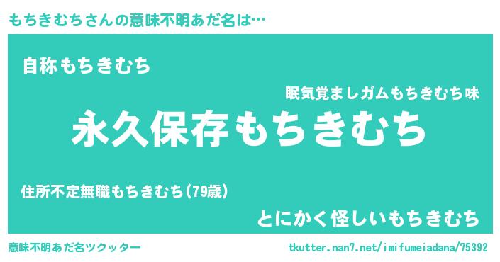 | 男性向けラノベタイトル風あだ名 | 『もちきむちという概念が存在しない退屈な世界 』 |