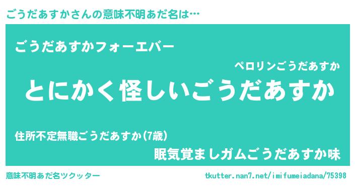 | 胡散臭い通販商品みたいなあだ名 | 『伝統あるサプリメント…その名も「ごうだあすか」』 |