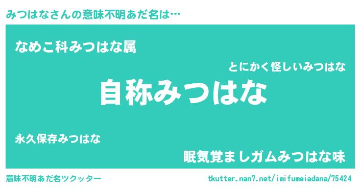 | 男性向けラノベタイトル風あだ名 | 『Re:みつはなから始める異世界生活』 |
