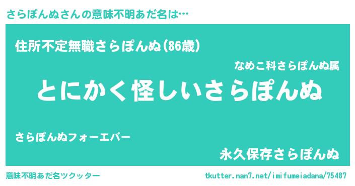 | ヘコむあだ名 | 『さらっちょ』『さらぽんぬ(震え声)』 |