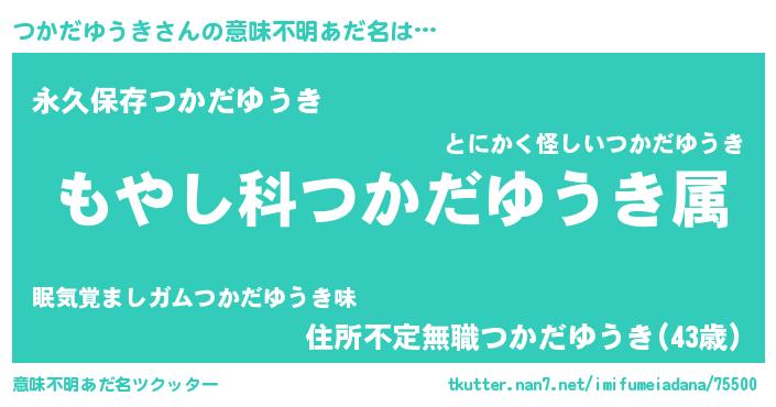 | ヘコむあだ名 | 『つかだゆうき(苦笑)』『つかを』 |