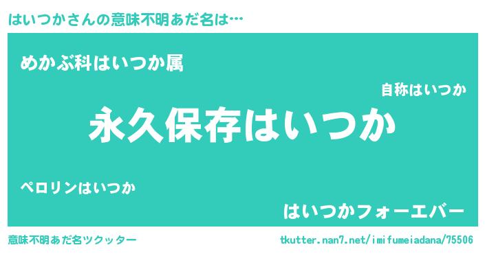 | 男性向けラノベタイトル風あだ名 | 『はいつかという概念が存在しない退屈な世界 』 |
