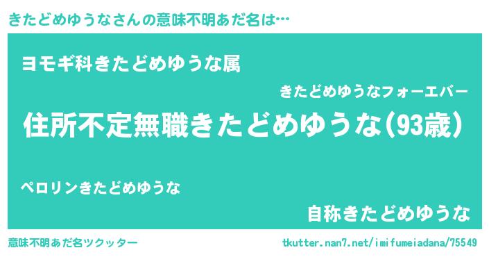 | 女子向けラノベタイトル風あだ名 | 『悪役きたどめゆうなに転生したようですが、知った事ではありません』 |