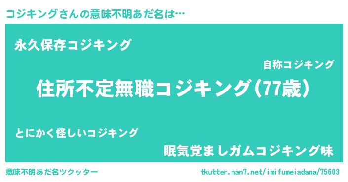 | ヒーロー風カッコイイあだ名 | 『仮面コジダー』『ネオコジキング』 |