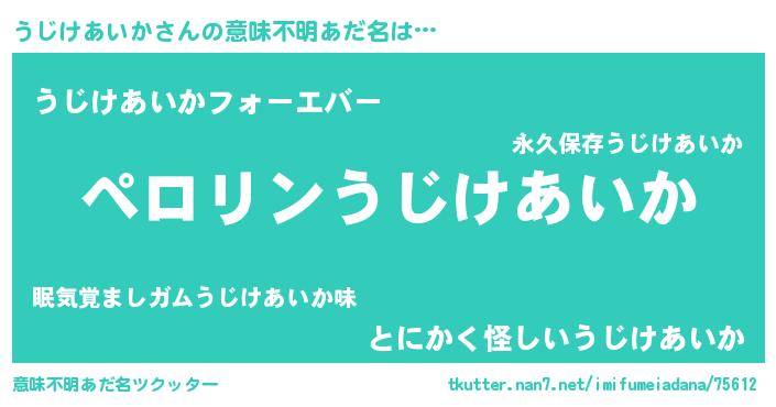 | 男性向けラノベタイトル風あだ名 | 『うじけあいかの憂鬱』 |