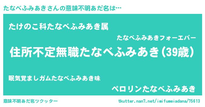 | 男性向けラノベタイトル風あだ名 | 『魔弾の王とたなべふみあき』 |