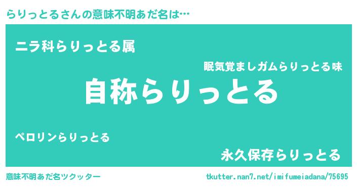 | 女子向けラノベタイトル風あだ名 | 『らりっとるなんてお断りですっ。』 |