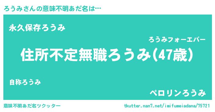 | ヘコむあだ名 | 『ろうみ(笑)』『ろうふぇ~』 |