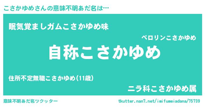 | 男性向けラノベタイトル風あだ名 | 『Re:こさかゆめから始める異世界生活』 |