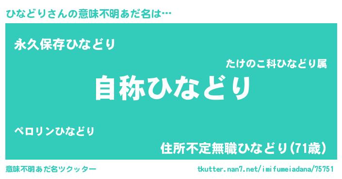 | ファンタジー風あだ名 | 『ゼヒナトゥ』『ヒナディッシュ』 |