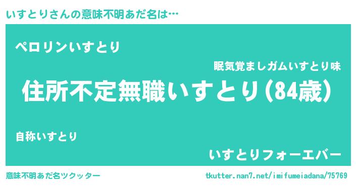 | 男性向けラノベタイトル風あだ名 | 『この素晴らしい世界にいすとりを!』 |