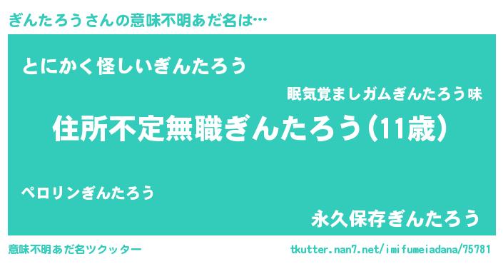 | 女子向けラノベタイトル風あだ名 | 『乙女ゲームの破滅フラグしかない悪役ぎんたろうに転生してしまった…』 |
