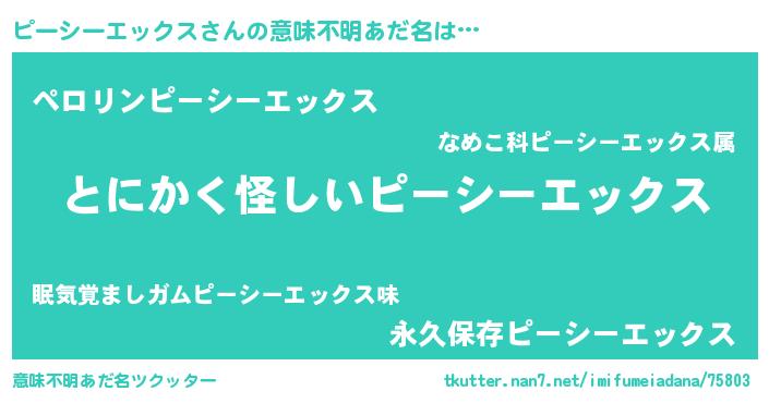 | 男性向けラノベタイトル風あだ名 | 『ピーシーエックスの嫁は女の子じゃないと思った?』 |