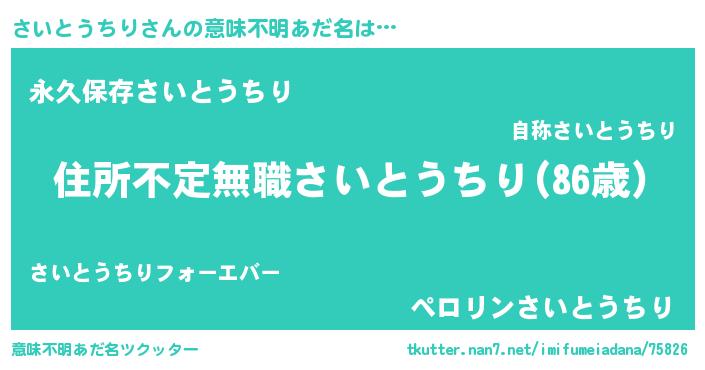 | ヘコむあだ名 | 『さいとうちり(震え声)』『さいにゅー』 |