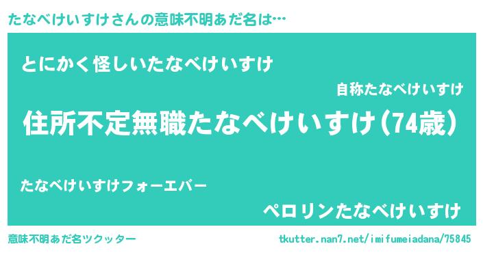 | 男性向けラノベタイトル風あだ名 | 『魔弾の王とたなべけいすけ』 |