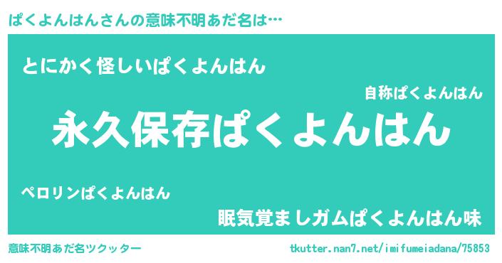 | 胡散臭い通販商品みたいなあだ名 | 『来世でも幸せになれる健康食品…その名も「ぱくよんはん」』 |
