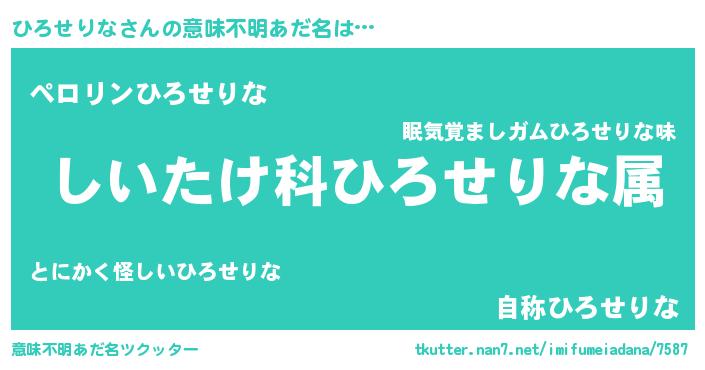 | 男性向けラノベタイトル風あだ名 | 『ヒロセリナスレイヤー』 |
