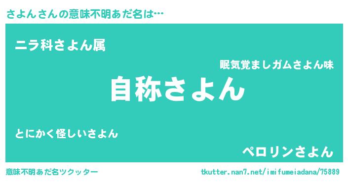 | 欧米人風あだ名 | 『アンジェラ・さよん』『マイケルさよん』 |