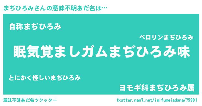 | 男性向けラノベタイトル風あだ名 | 『おまえをオタクにしてやるから、俺をまぢひろみにしてくれ! 』 |