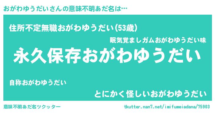 | 胡散臭い通販商品みたいなあだ名 | 『絶対に幸福をもたらす健康食品…その名も「おがわゆうだい」』 |