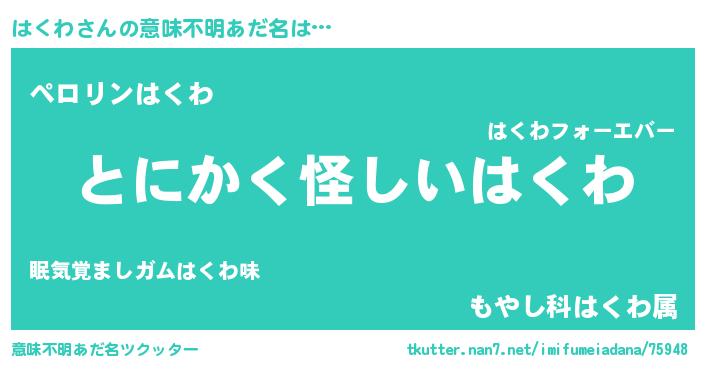 | ヘコむあだ名 | 『はくを』『はくにー』『なまこ酢』 |